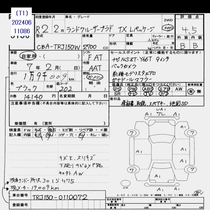 | Auction | JU Kyokyuzaiko | Chassis No. | TRJ150W-0110072 | ||