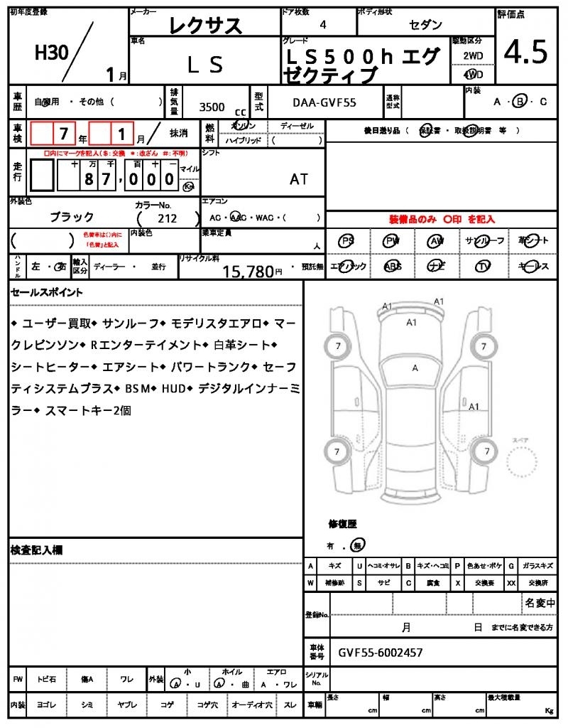 | Auction | Quick Kyoyuzaiko | Chassis No. | GVF55-6002457 | ||