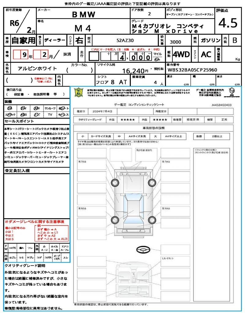 | Auction | Quick Kyoyuzaiko | Chassis No. | WBS32BA05CP25960 | ||
