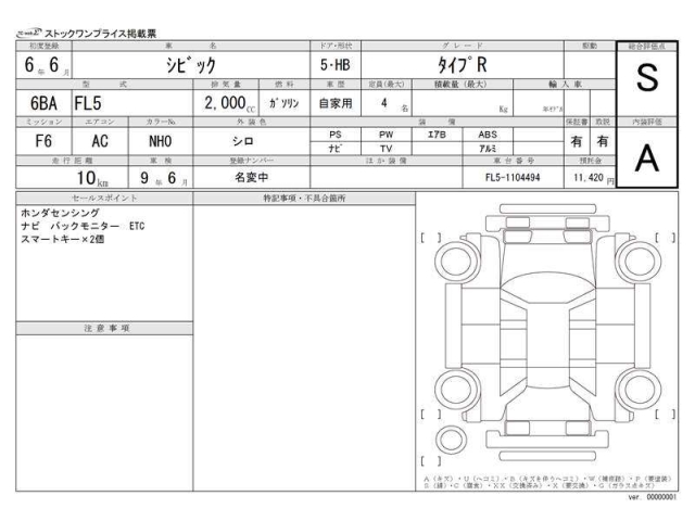 | Auction | TAA / CAA Kyoyuzaiko | Chassis No. | FL5-1104494 | ||