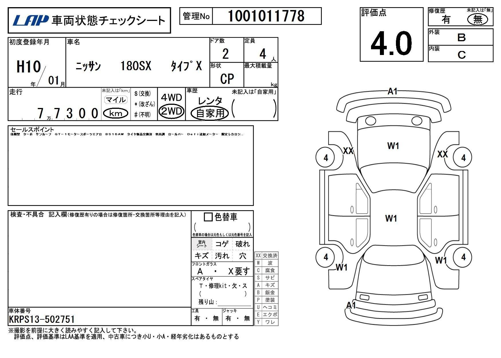 | Auction | LAP Kyoyuzaiko | Chassis No. | KRPS13-502751 | ||