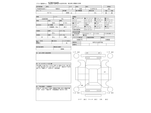 | Auction | ARAI Kyoyuzaiko | Chassis No. | RPS13-327755 | ||