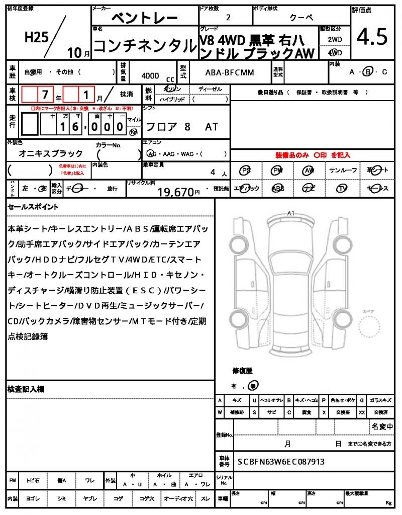 | Auction | Quick Kyoyuzaiko | Chassis No. | SCBFN63W6EC087913 | ||
