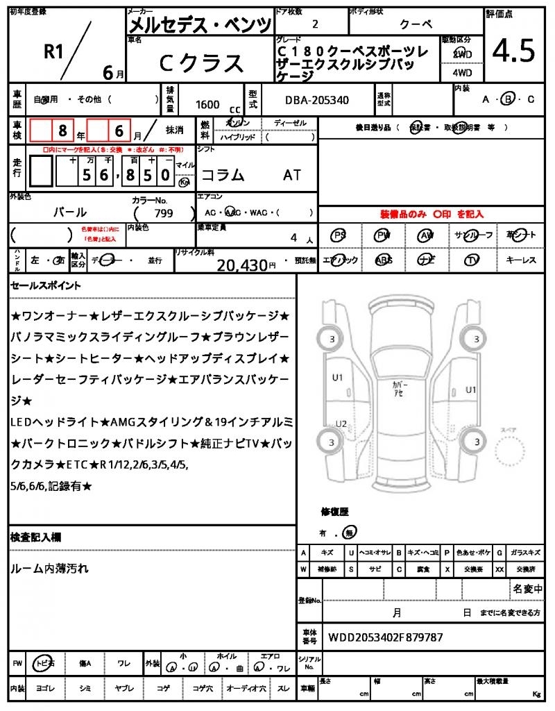 | Auction | Quick Kyoyuzaiko | Chassis No. | WDD2053402F879787 | ||