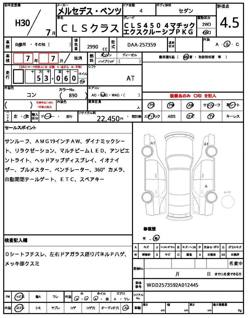 | Auction | Quick Kyoyuzaiko | Chassis No. | WDD2573592A012445 | ||