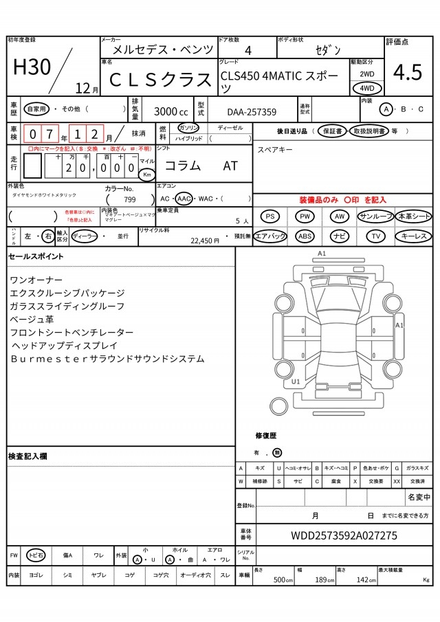| Auction | Quick Kyoyuzaiko | Chassis No. | WDD2573592A027275 | ||