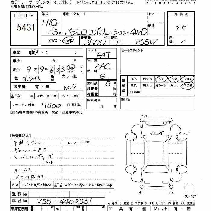 | Auction | JU Gifu One Price | Chassis No. | V55W-4402531 | ||