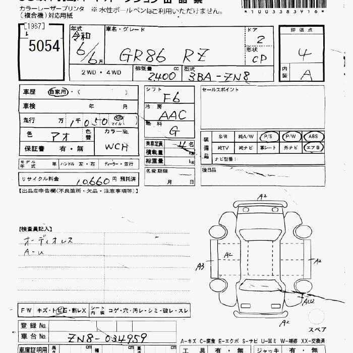 | Condition | Used | Location | N/A | Grade | GR 86 RZ |