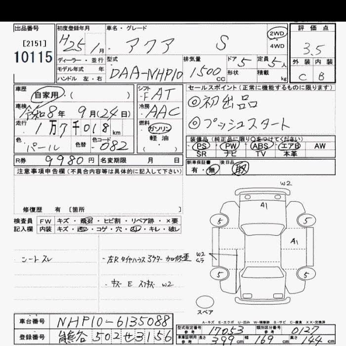 | Auction | JU Saitama One Price | Chassis No. | NHP10-6135088 | ||
