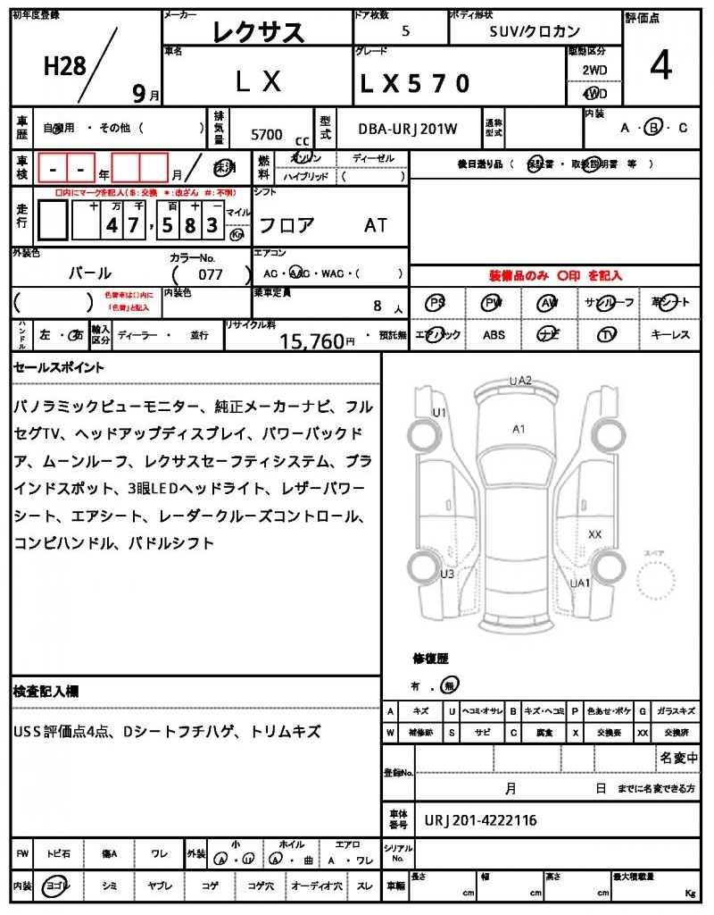 | Auction | Quick Kyoyuzaiko | Chassis No. | URJ201-4222116 | ||