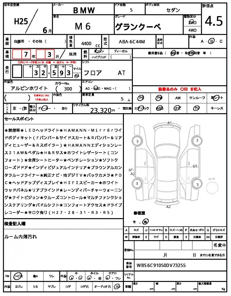 | Auction | Quick Kyoyuzaiko | Chassis No. | WBS6C91050DV73255 | ||