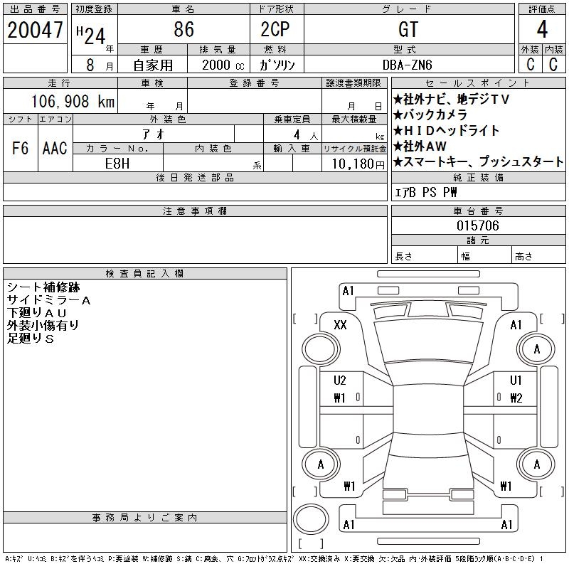 | Auction | CAA Chubu One Price | Chassis No. | ZN6-015706 | ||