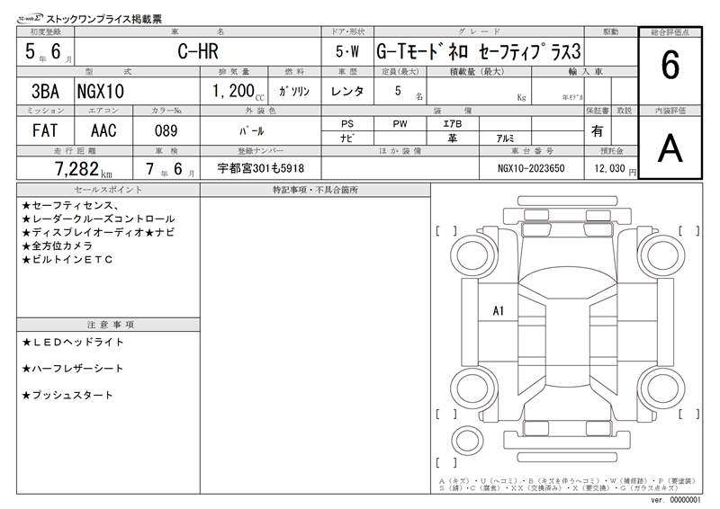 | Auction | TAA / CAA Kyoyuzaiko | Chassis No. | NGX10-2023650 | ||