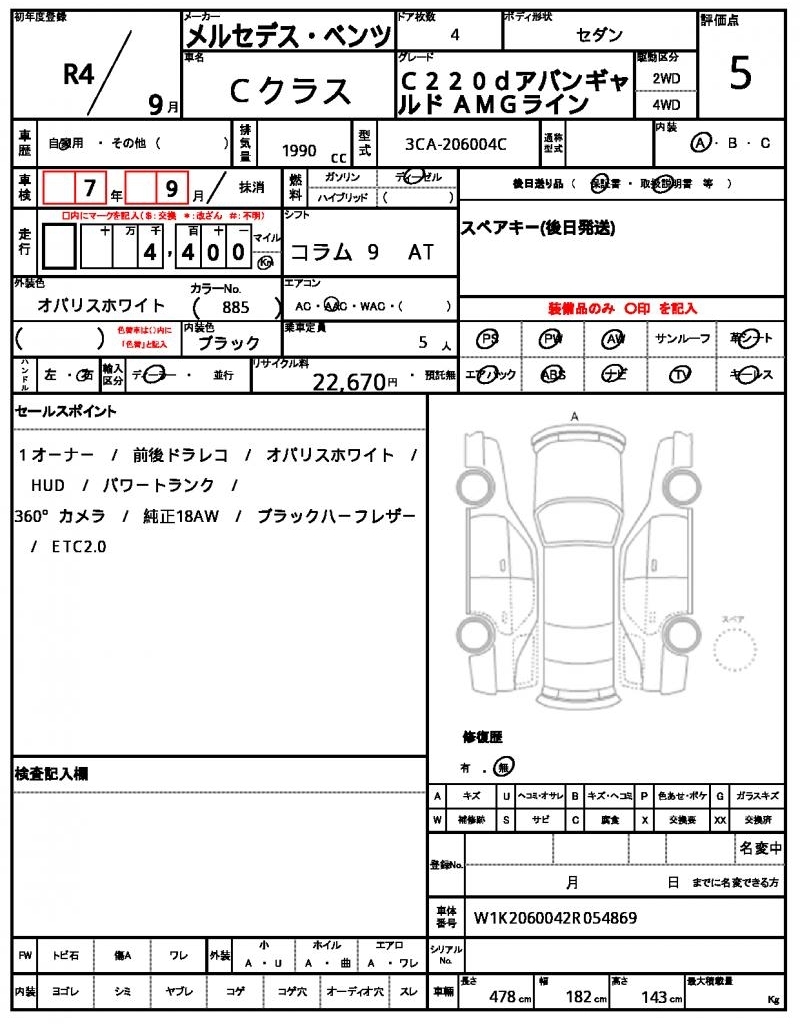 | Auction | Quick Kyoyuzaiko | Chassis No. | W1K2060042R054869 | ||
