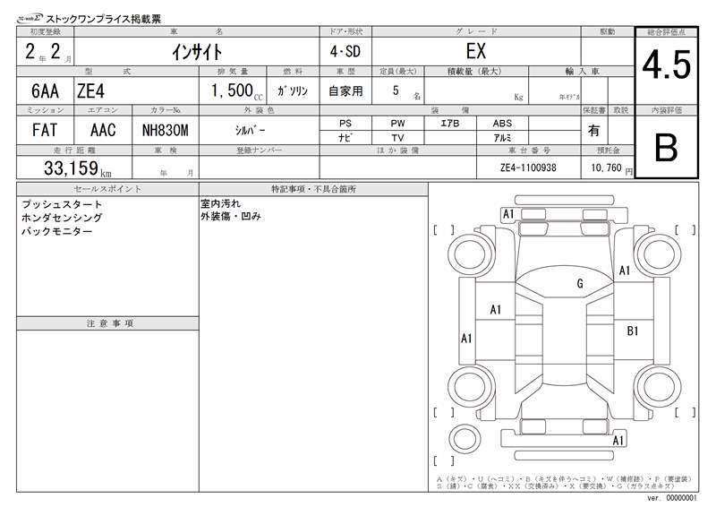 | Auction | TAA / CAA Kyoyuzaiko | Chassis No. | ZE4-1100938 | ||