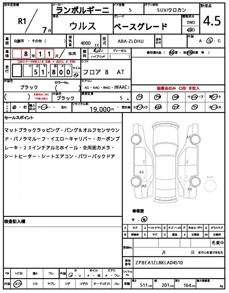 | Auction | Quick Kyoyuzaiko | Chassis No. | ZPBEA1ZL8KLA04510 | ||